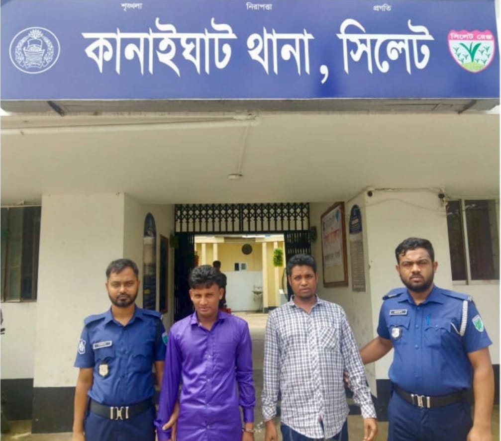 সিলেটের কানাইঘাট উপজেলার কানাইঘাট থানাএলাকায় কানাইঘাট থানার অফিসার ইনচার্জ মোঃ আব্দুল আউয়াল এর নেতৃত্বে এএসআই(নিঃ) রাসেল মিয়া, এএসআই(নিঃ) বিলাল আহমদ, এএসআই(নিঃ) এরশাদ আলী সঙ্গীয় ফোর্সসহ ২৪/০৫/২০২৫ তারিখ দিবাগত রাতে কানাইঘাট থানা এলাকায় একটি বিশেষ অভিযান পরিচালনা করে এসময় কানাইঘাট জিআর-২১০/২৩ মামলার ওয়ারেন্টভূক্ত আসামী নারায়নপুর গ্রামের সাজ্জাদ মিয়ার ছেলে মোঃ জসিম উদ্দন, সহ অপর একটি অভিযানে মৌলভীবাজার জেলার বড়লেখা থানা এলাকা হইতে অর্থঋন জারি-১৫/২৩ এর ০৬ মাসের সাজাপ্রাপ্ত আসামী কানাইঘাটের কুমাইর মাটি গ্রামের মৃত আসদ্দর আলীর ছেলে মোঃ এনাম উদ্দিন কে গ্রেফতার করে কানাইঘাট থানা পুলিশ। কানাইঘাট থানার অফিসার ইনচার্জ আব্দুল আউয়াল বলেন সিলেট জেলা পুলিশের মাননীয় পুলিশ সুপার মোহাম্মদ মাহবুবুর রহমান স্যারের নির্শেনায় আমাদের প্রতিদিন আইনি সেবা এবং শান্তি শৃঙ্খলা রক্ষায় যথাযথ দায়িত্ব পালন করে যাচ্ছে কানাইঘাট থানা পুলিশ এরই ধারাবাহিকতায় সব ধরনের পরোয়ানা ভুক্ত এবং চাঞ্চল্যকর ঘটনার মামলা দ্রুত নিষ্পত্তি করতে যে আইনগত পক্রিয়া রয়েছে আমরা তা যথাযথ ভাবে পালন করে যাচ্ছি আমাদের প্রতিদিনের কার্যক্রম যত দ্রুত শেষ হয় সেই পক্রিয়ায় আগাচ্ছি আমরা ।গতকালকের গ্রেফতারকৃত আসামীদ্বয়কে অদ্য ২৫/০৫/২০২৫ইং তারিখ যথাযথ পুলিশ স্কর্টের মাধ্যমে বিজ্ঞ আদালতে সোপর্দ করা হয়েছে।