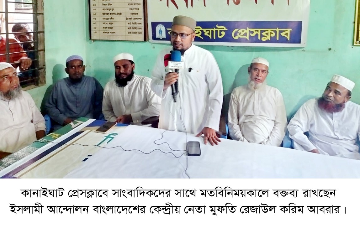 গতকাল বুধবার বিকেল ৫টায় ক্লাব কার্যালয়ে সাংবাদিকদের সাথে মতবিনিময়কালে সিলেট-৫ (কানাইঘাট-জকিগঞ্জ) আসনের ইসলামী আন্দোলনে সম্ভাব্য সংসদ সদস্য প্রার্থী মাও. রেজাউল করিম আবরার বলেন, জুলাই গণঅভ্যুত্থানের মাধ্যমে ফ্যাসিবাদী আওয়ামীলীগ সরকারের পতনের মাধ্যমে দেশের মানুষ সর্বক্ষেত্রে একটি পরিবর্তন চাচ্ছেন। ইসলামী আন্দোলন বাংলাদেশ সমমনা সকল ইসলামী দল এবং ইসলামী ভাবধারার আদর্শে বিশ্ববাসী নিয়ে আগামী জাতীয় সংসদ নির্বাচনে একটি নির্বাচনী জোট করতে চায়। এজন্য ইসলামী আন্দোলনের আমীর মুফতি সৈয়দ মুহাম্মদ রেজাউল করীম (পীর সাহেব চরমোনাই) রাহবারের দায়িত্ব পালন করে যাচ্ছেন।